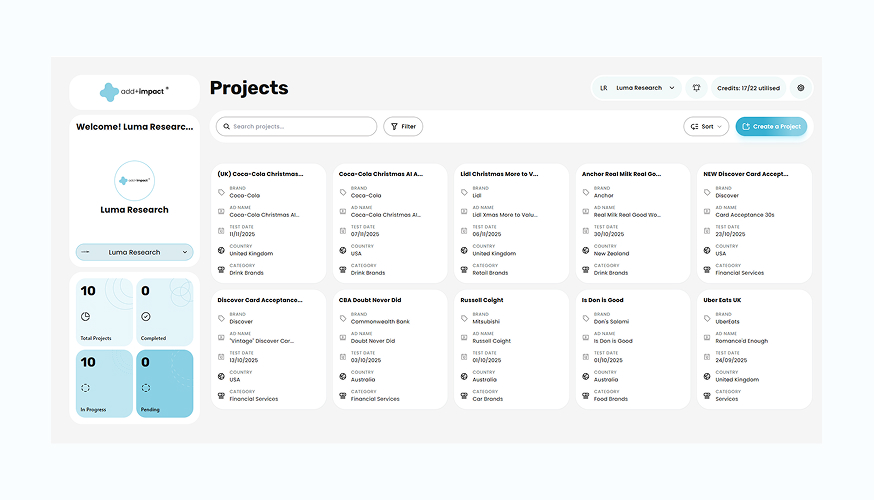 AddImpact streamlines pre and post launch ad testing. Users upload live ads, video, static, or audio, answer a short brief, and the system automatically builds a survey, sources the right audience based on ICP, collects responses, and generates a structured performance insight report.